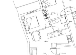 Το διαμέρισμα είναι 2χώρο, με σαλόνι-κουζίνα και 1 υπνοδωμάτιο.